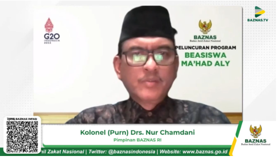 On Thursday (28/7/2022), the launching of Ma’had Aly Cendekia Scholarship Program was held online and broadcasted live through BAZNASTV YouTube channel. The ceremony was attended by the Commissioner of BAZNAS, Colonel (Purn.) Drs. Nur Chamdani, the Head of Education and Ministry of BAZNAS Farid Septian, the Head of BAZNAS Scholarships Sri Nurhidayah, and the Head of Indonesian Ma’had Aly Association Nur Hannan.