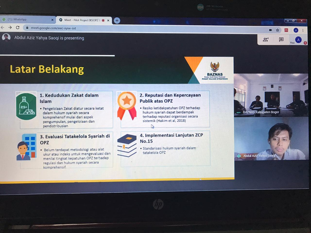On Thursday, March 19 2020 Puskas BAZNAS held an online meeting for the Shariah Compliance Index Pilot Project.