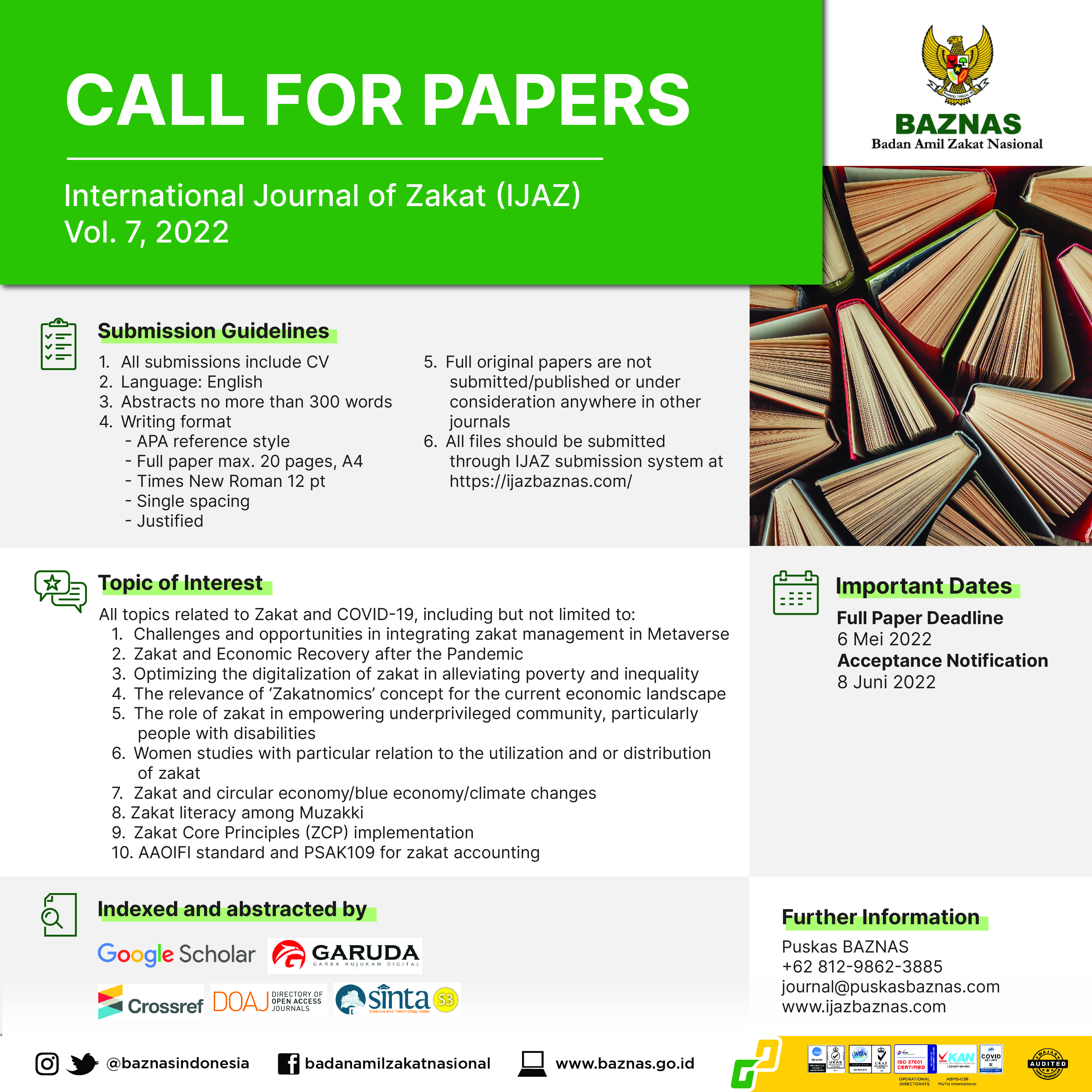 CALL FOR PAPER: INTERNATIONAL JOURNAL OF ZAKAT (IJAZ) Vol. 7 2022