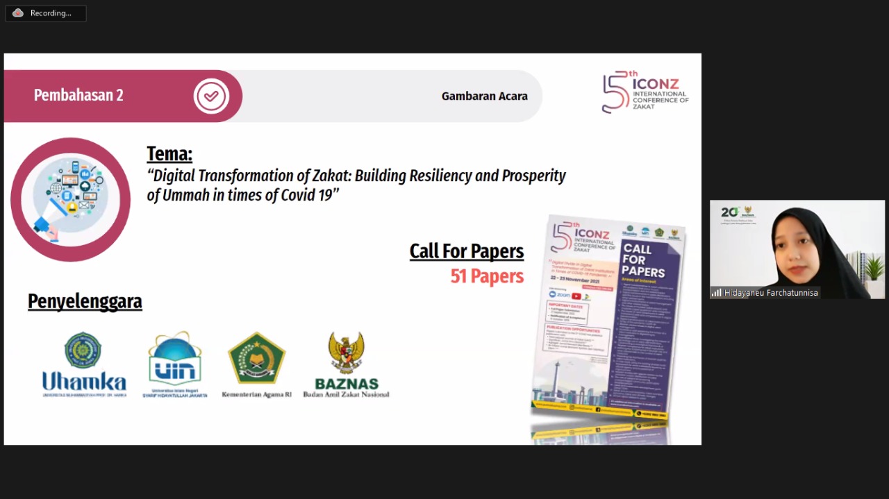 On Wednesday, November 3, 2021 Puskas BAZNAS held a meeting with students from UHAMKA and UIN Syarif Hidayatullah Jakarta for the preparation of the upcoming 5th International Conference of Zakat (ICONZ). ICONZ is an annual conference held by Puskas BAZNAS and the Ministry of Religious Affairs to gather academicians, practitioners, zakat enthusiasts and other zakat stakeholders to discuss current issues regarding the development of zakat. This year, the event will be held both online and offline due to the current situation of the COVID-19 Pandemic.