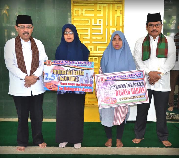 The National Board of Zakat (BAZNAS) Agam, West Sumatra, distributes zakat up to 231 million rupiahs to 139 mustahiq in that area. Chairman of BAZNAS Agam, Isman Imran said this zakat funds was distributed through several programs, namely “Agam Makmur” program (Rp 49 million) which is disbursed to 26 mustahiq, “Agam Cerdas” program (Rp 82 million) which is distributed to 82 mustahiq, “Agam Sehat” program (Rp 36 million) to 17 mustahiq, “Agam Taqwa” program (Rp 9.5 million) to two mustahiq, and “Agam Peduli” program (Rp 53.4 million) to 12 mustahiq.