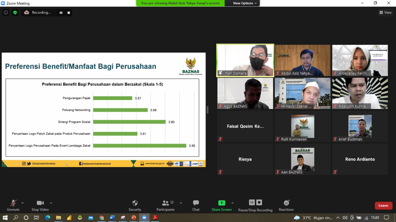 On Monday (5/7/2021) Puskas BAZNAS has successfully conducted the book launching of the Preference Survey of Corporation in Paying Zakat.