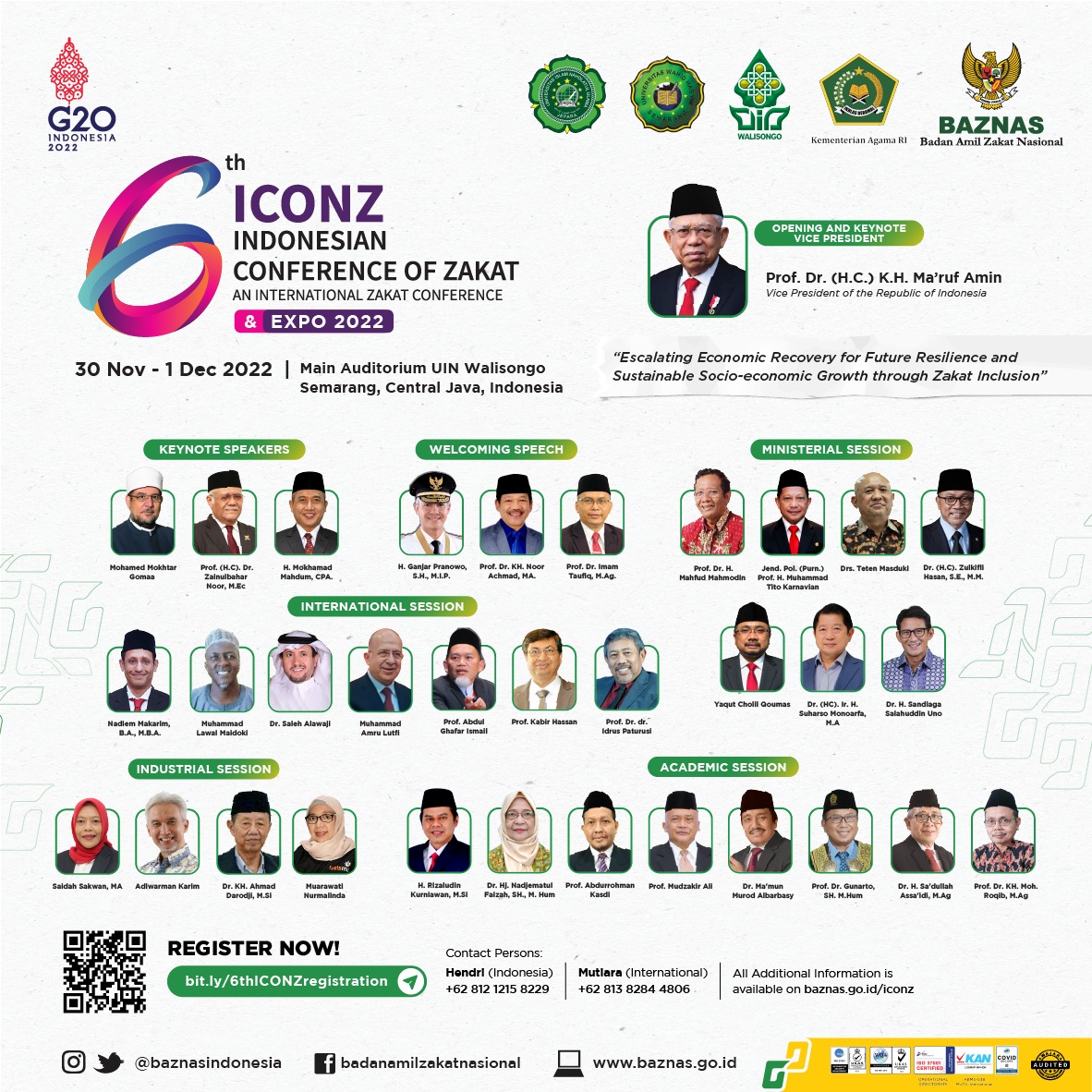 The National Amil Zakat Agency held the 6th Indonesian Conference of Zakat (ICONZ) & Expo 2022 at UIN Walisongo on November 30 to December 1, 2022. The implementation of the sixth ICONZ became more special than the previous year because apart from collecting Call for Papers for the best papers presented and published in the BAZNAS journal, there was also the implementation of the Mustahik MSME Expo assisted by the Zakat Management Institute both BAZNAS and LAZ as well as the launching of the mustahik entrepreneur product export. Thus, this activity can increase the economic potential of mustahik, which is exhibited directly to all ICONZ participants and stakeholders.