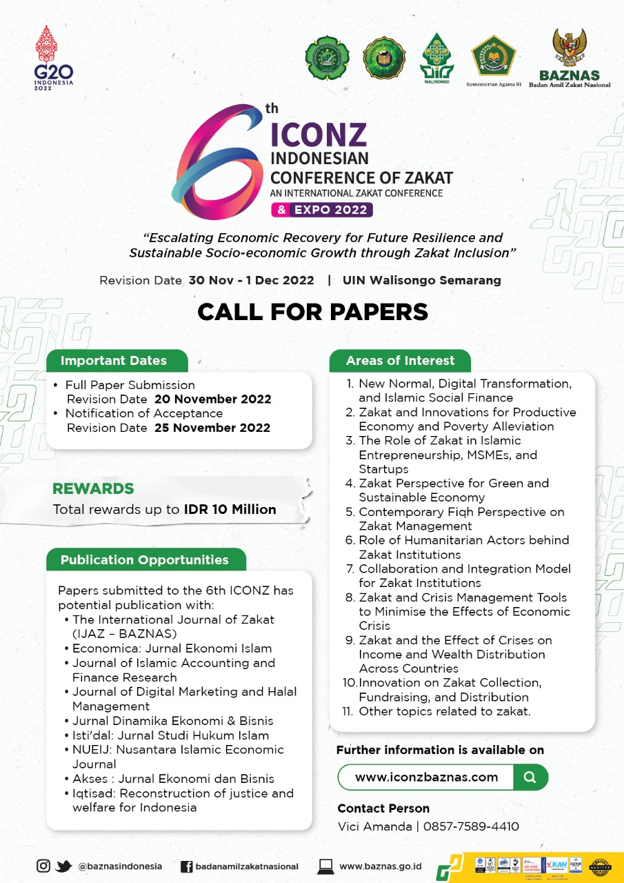 BAZNAS HOLDS CALL FOR PAPER 6th INDONESIAN CONFERENCE OF ZAKAT (ICONZ) & EXPO 2022 AT UIN WALISONGO, SEMARANG, INDONESIA