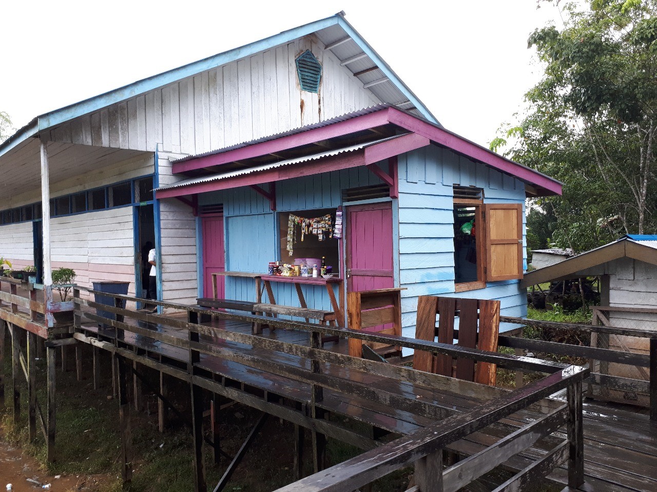 Muyub Ilir village is located on the edge of the Mahakam river where people are accustomed to use the river water to meet their daily needs. In fact, the water is already contaminated by plant waste generated by companies operating around their area. Since the location of the village is right by the river, the house on stilts which is the main characteristic of traditional house type in this area allows their house to survive the flooding of tides. Moreover, the people of the village remain peaceful and helpful despite their varying beliefs.