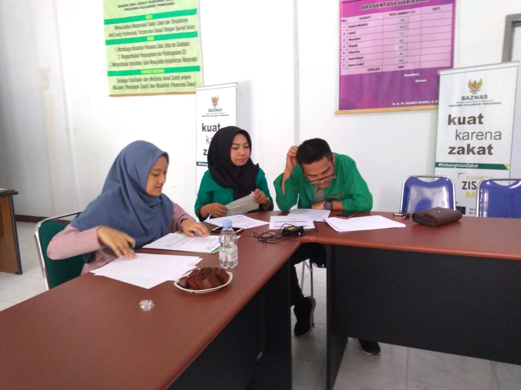 Puskas BAZNAS assessor digged up information from the head of finance of the BAZNAS Southeast Sulawesi Province regarding the zakat condition in Riau Islands Province through the IZN. Furthermore, the representatives of Puskas BAZNAS coordinated with the BAZNAS Southeast Sulawesi Province officials regarding the implementation of productive zakat impact assessment. The briefing for the officials to conduct the survey was also be given on the second day of the visit. In addition, the surveyor conducted a survey of the ZCP implementation in BAZNAS Southeast Sulawesi Province as the coordinator of zakat institutions in Southeast Sulawesi Province.